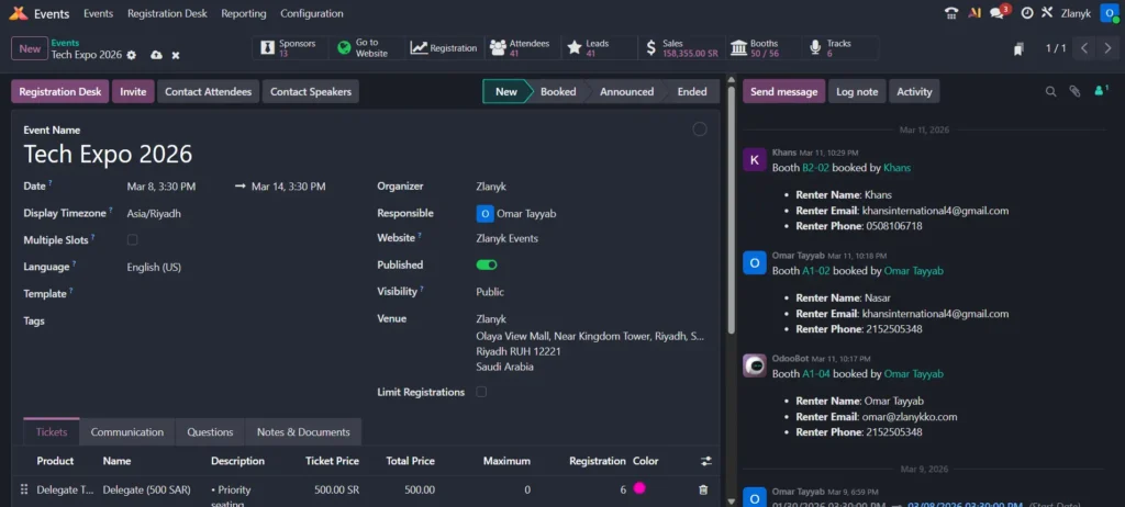 Platforms like Odoo provide the tools needed to streamline event operations, enhance collaboration between teams, and deliver a better experience for exhibitors, sponsors, and attendees.